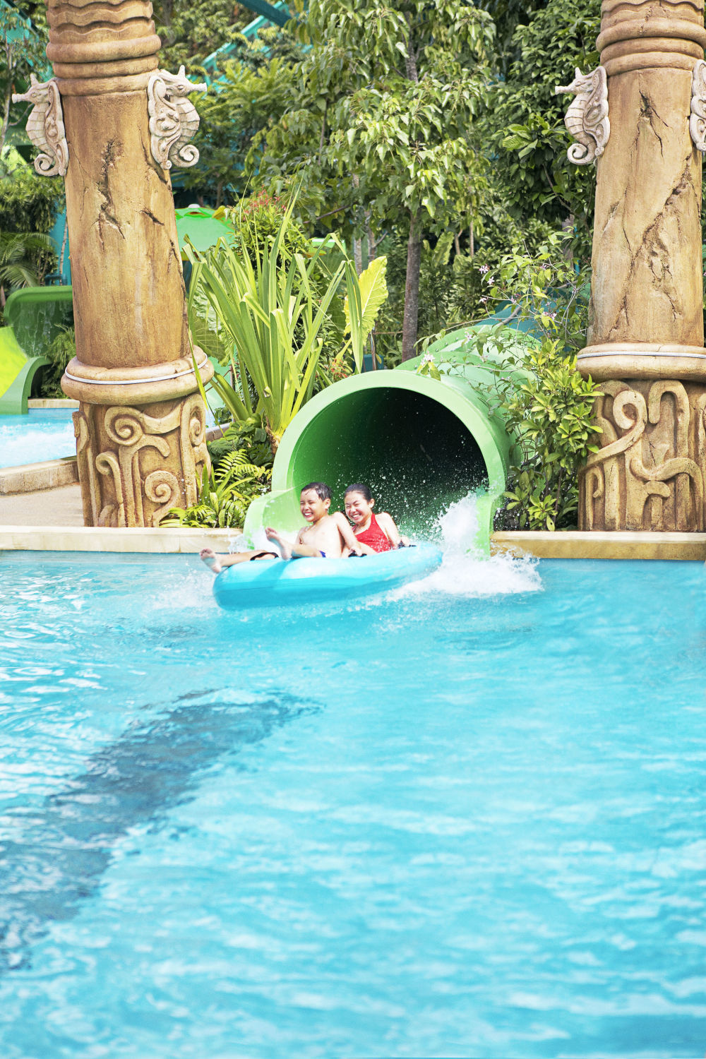 セントーサ島のみならず、ひょっとしてシンガポールのお遊びスポットの中でも、子供に一番人気なのはアドベンチャー・コーブ・ウォーターパーク TMかもしれません。6種類のスライダーと2種類のプールがあって、大人も子供もたっぷり遊べます。