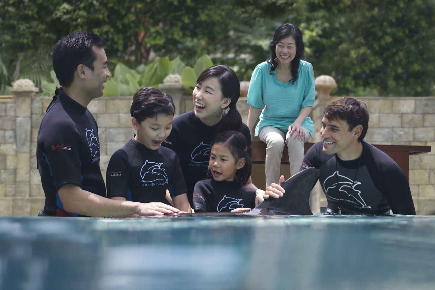 イルカについての研究は年々進み、かわいいだけでなく、知能が高くてフレンドリーなことが分かってきました。アドベンチャー・コーブ・ウォーターパークにある「ドルフィンアイランド」では、かなり本格的にイルカとふれあうことができます。文字どおり、イルカに直接タッチできるのが子供には魅力的ですね。