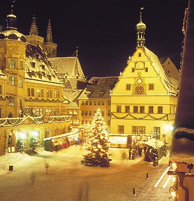 ローデンブルクのクリスマスマーケットは、まるで絵本の世界に迷い込んだような雰囲気。