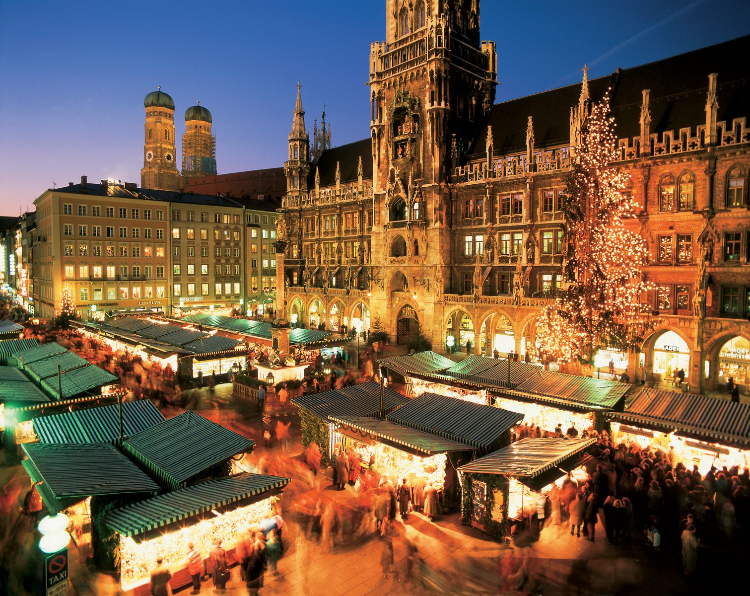 ミュンヘンのシンボル、マリエン広場を中心に開催される伝統的なマーケット。約2,500個もの電球で飾られた30mものツリーもクリスマスムードを盛り上げます。市庁舎の塔に位置するからくり時計Glockenspiel(グロッケンシュピール)にも注目です!