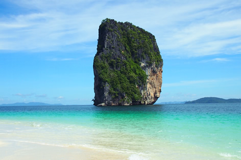 タイ・バンコクから国内線で1時間強の距離にあるクラビは、白砂のビーチとエメラルドグリーンのアンダマン海に囲まれた静かなビーチリゾートです。