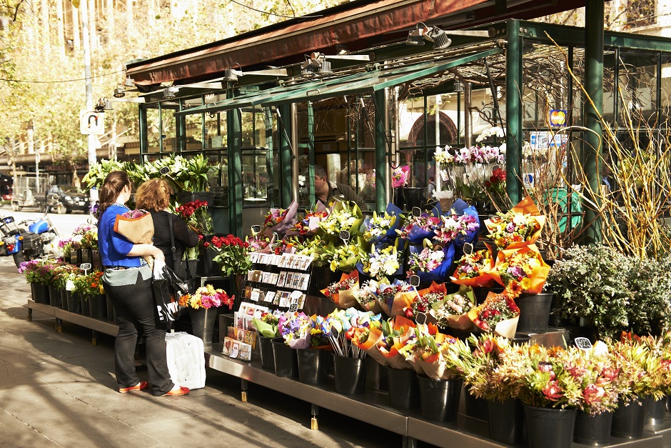 春夏のベストシーズンなら、街を歩くだけで楽しい気分になれます。ガーデン・シティのメルボルンは、街角のお花屋さんもとってもいい雰囲気です。