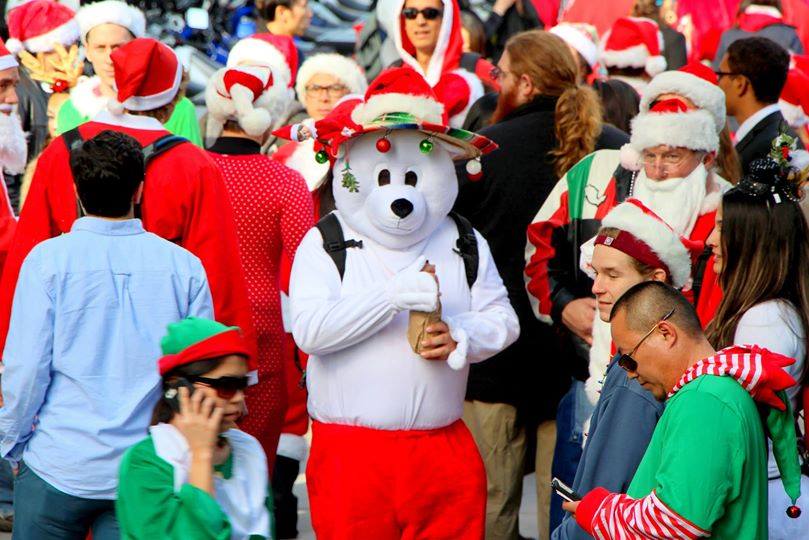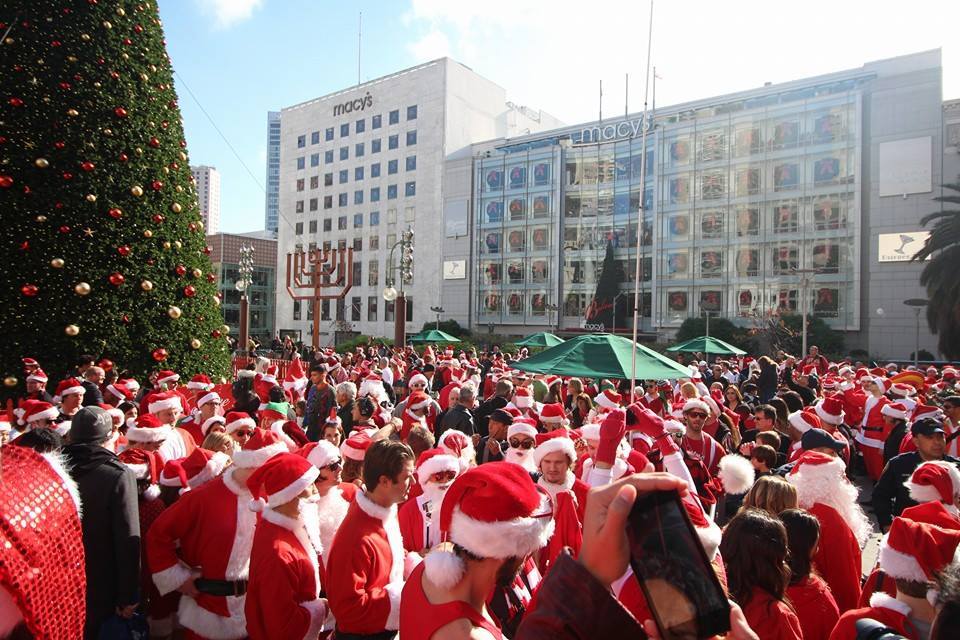 サンフランシスコ・ユニオンスクエアでは、毎年恒例のサンタクロースの仮装をして集まるイベント、“サンタコン”が今年も開催されました!サンタコンとは、サンタクロース・コンベンションの略で、サンタクロースの格好をして集まろうというイベントです。チャリティイベントなので、おもちゃ等の寄付も受け付けています。