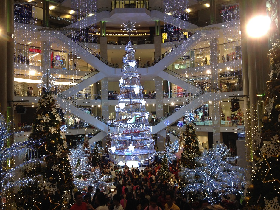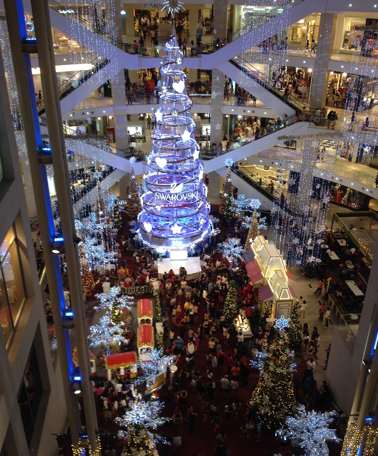 また、クアラルンプール中心Bukit Bintang(ブキッ ビンタン)のショッピングモールのアトリウムにあるクリスマスツリーが大変な規模になっています!なんとアジアの室内クリスマスツリーで一番高い23mで、クリスタルを174,853個使っています。