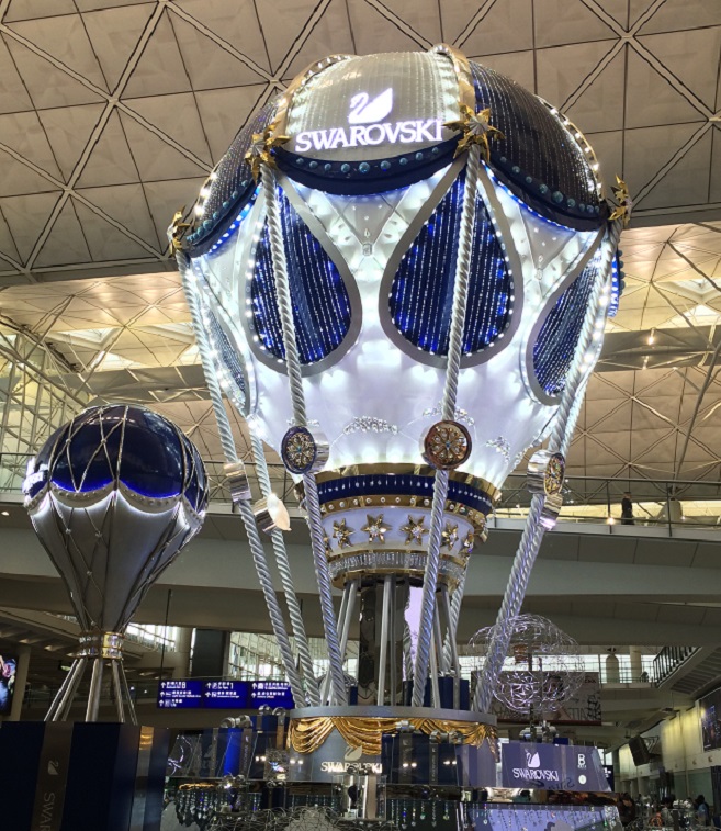 香港空港でお出迎えしてくれるのは、こちらのスワロフスキーのツリーです。バルーン型がユニークです。