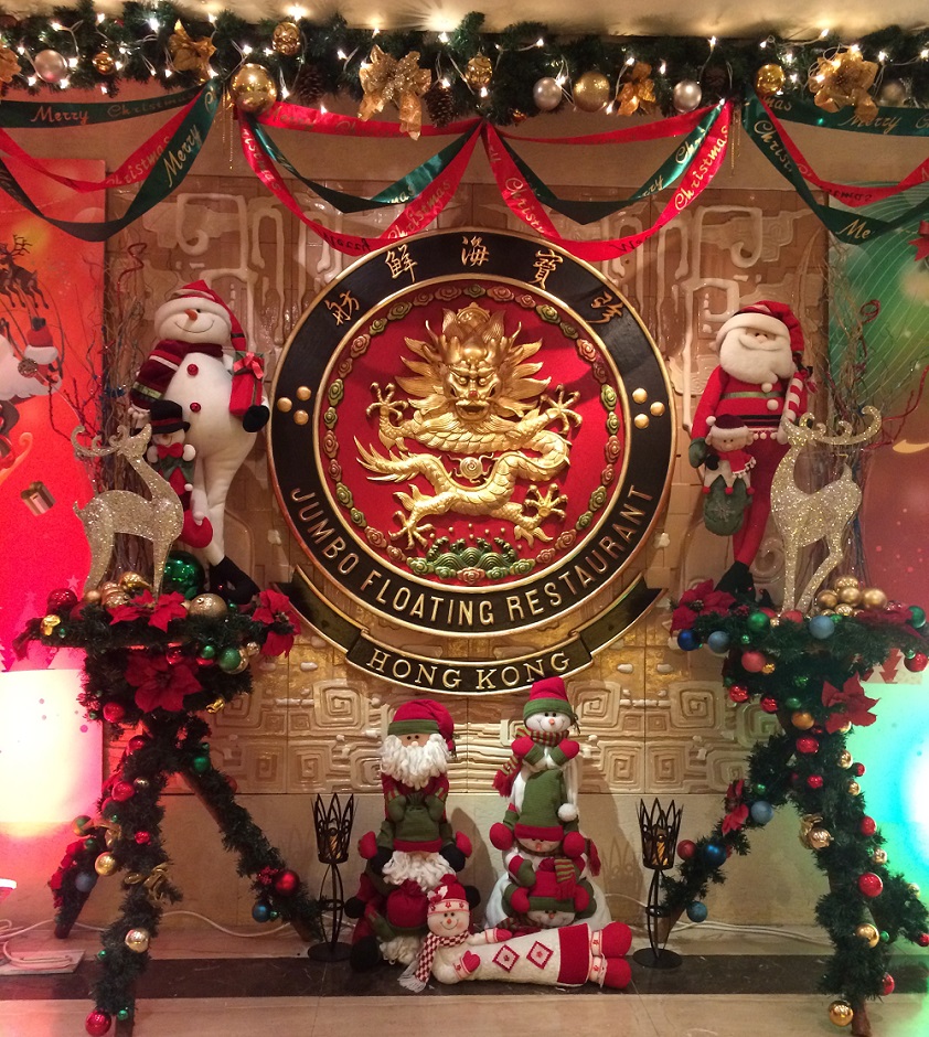 「ザ・香港」と言っていいほどの、水上レストラン「JUMBO」。レストランもかわいくクリスマスのデコレーションがされています。