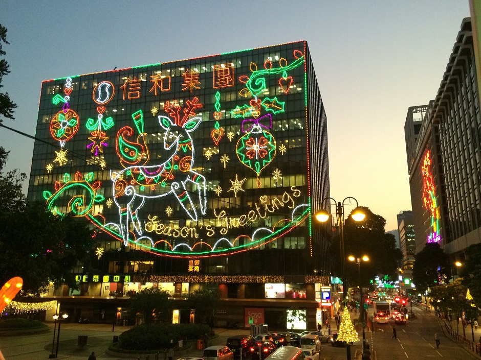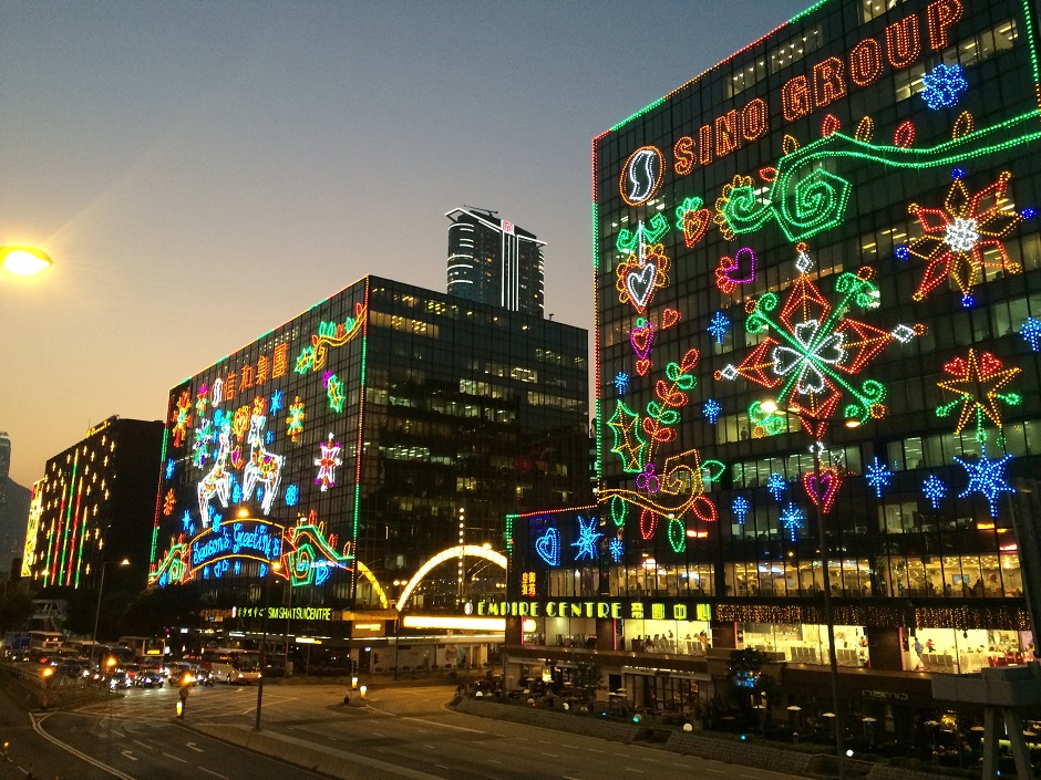 香港でもクリスマスのツリーやデコレーションは街中で楽しめます!各ホテルやショッピングモール、中華レストランでもオリジナリティーあふれるクリスマスデコレーションが楽しめ、街中のビルもクリスマス仕様になっています。