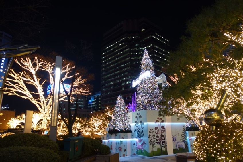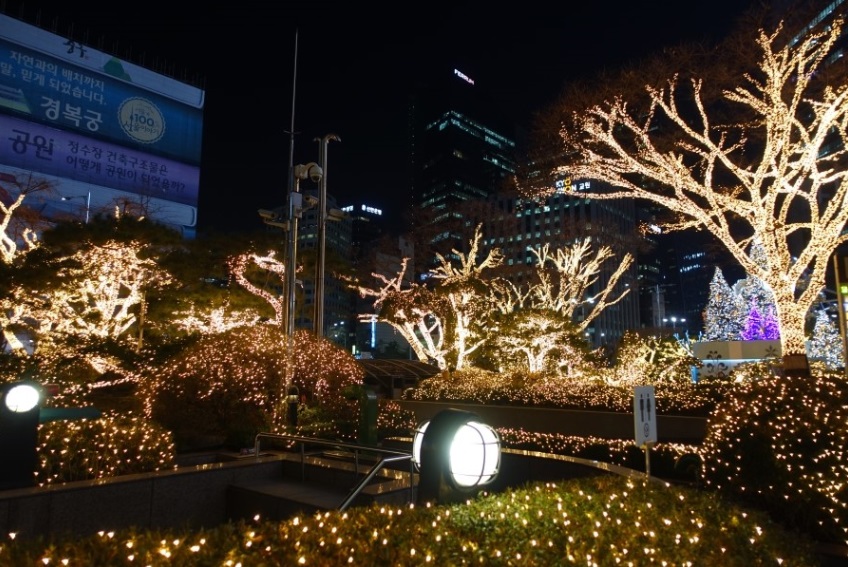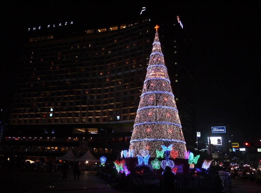 ソウルでは、毎年11月末から、ソウル市庁の前に大きなクリスマスツリーが建てられます。今年は11月28日に点灯式が行われました。このイベントは、今年で14回目!今では、毎年恒例の一大イベントになっています。毎日午後5時半から深夜1時まで市庁前をきらびやかに演出しています。
