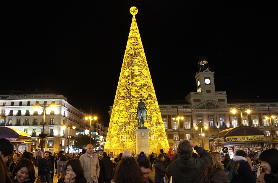 スペインのクリスマスは長く、年明けの1月6日まで続くので、年末年始も人々が集まる広場などには大きなクリスマスツリーが飾られています。マドリード中心の太陽広場では、大晦日にカウントダウンが行われ、身動きが取れないぐらいに人が集まり、午前0時の鐘の音に合わせてぶどうを12粒食べるのが定番行事になっています。これは「幸運を呼ぶ12粒のぶどう」と呼ばれ、新年の12ヶ月を象徴しそれぞれの月の幸運を祈るという意味があるとか。みごと12粒食べ切れたら新年に願い事がかなうといわれています。