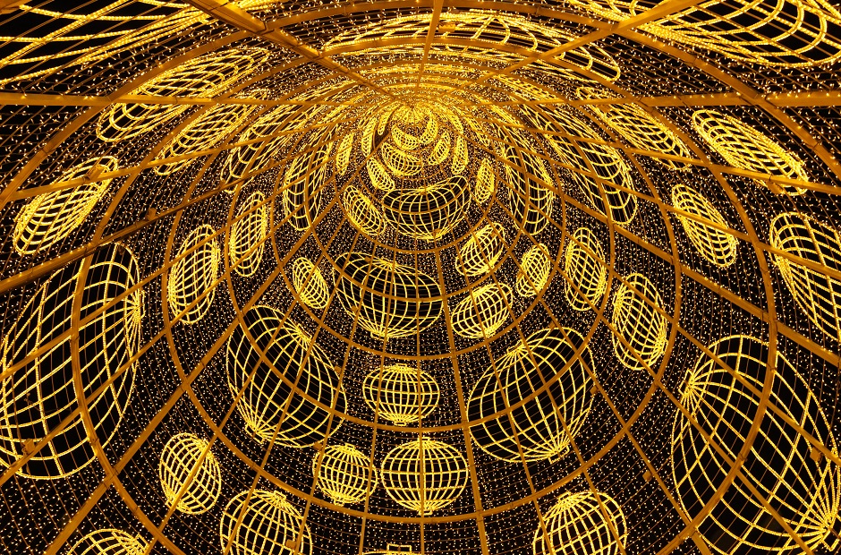 ツリーの中は通り抜けられるようになっています。見上げるときれい!