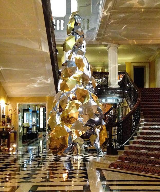 また、日本では天皇陛下が来英した時にいつも利用することでも知られるロンドンを代表する高級ホテルClaridge's Hotelのロビーにある、100個のゴールドとシルバーの傘で作られたツリーで、バーバリーのクリエイティブ・ディレクターを務めるクリストファー・ベイリー氏がデザインしました。とってもアートなツリーですね!