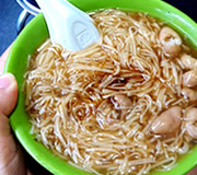 見た目はソーメンのようですが茶色く、とろみとコクのあるカツオの出汁が良く効いたスープが人気の豚の大腸が入った麺料理「麺線」。日本人観光客にも大人気。
