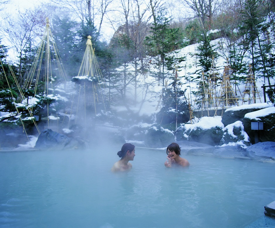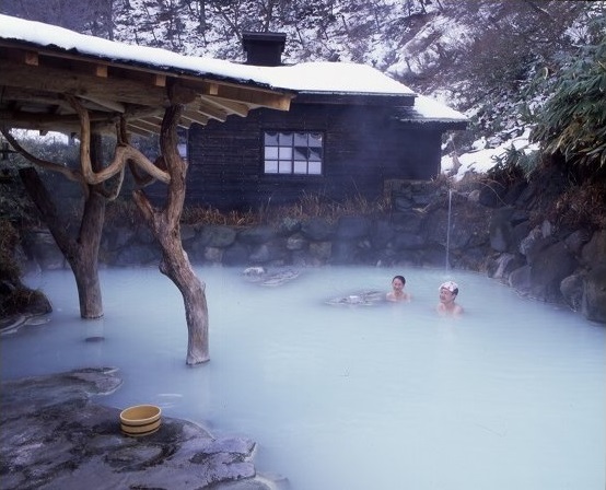乳白色のお湯と雪景色がとても美しい!有名な露天風呂は混浴ですが、肩まで浸かれば真っ白で見えない為、女性も安心して楽しめます。