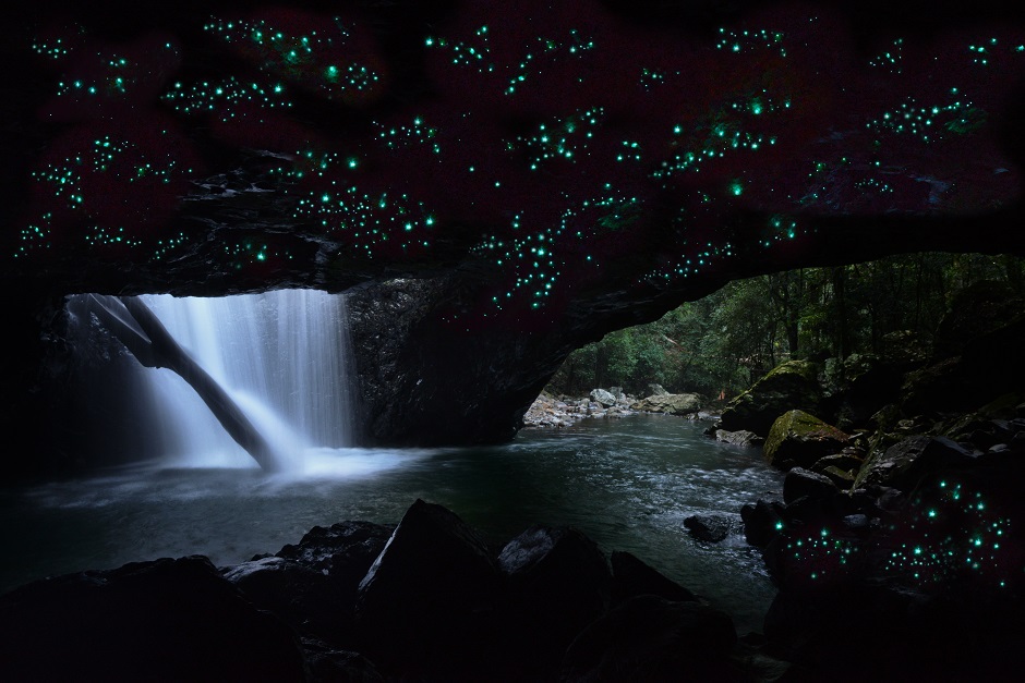 中でも、絶対に見ておきたいのが、神秘的な土ボタル。山から流れ落ちる川の水圧によって完成した自然の洞窟(ナチュラルブリッジ)には、南半球だけに生息すると言われる、無数の土ボタルが洞窟の天井を照らします。土ボタルの光はとても弱いため日中は見ることはできない、夜だけの特別な体験。