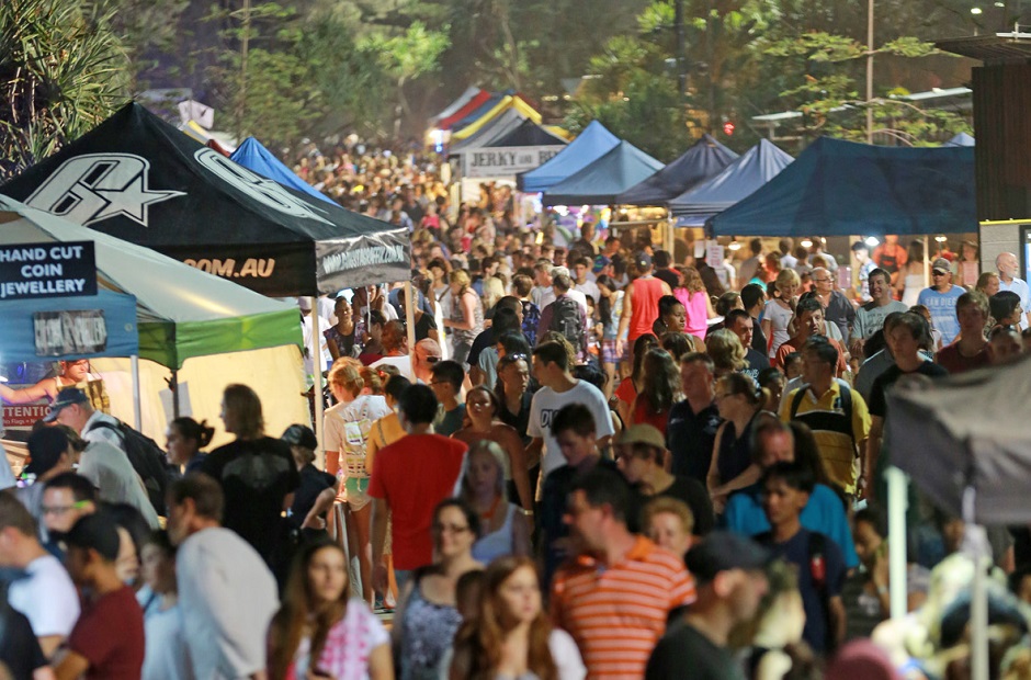毎週水曜日と金曜日の夜には、500メートルにわたる海岸沿いで、「サーファーズパラダイス・ビーチフロント・ナイトマーケット」が開催されます。約70軒のお店が並び、クラフト系のお店やオーガニックコスメ、洋服、絵画など一風変わったオーストラリア土産が見つかるかもしれません。