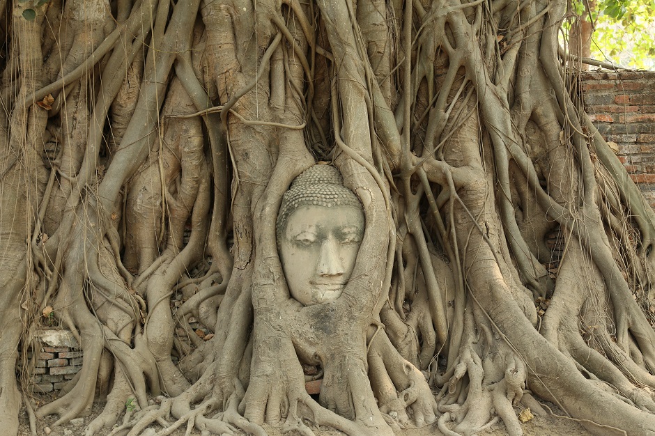 こちらの見どころは、何といっても樹木に包まれた仏頭です。ワット・マハタートは、アユタヤ王朝陥落時にビルマ軍に攻められ、仏像や寺院を徹底的に破壊されてしまいました。その後地面に転がっていた仏頭に、その場に根付いた木が包み込むように成長した、という説があります。実際に現地に行って、破壊されている仏像や寺院を見ると、この仏頭を見たときにとても心が動かされます。