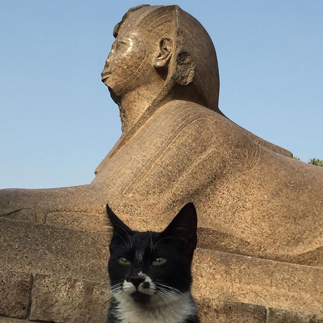 @1970akira さんに投稿いただいたエジプトの猫の写真です。この猫さん、スフィンクスと仲良しなのでしょうか?