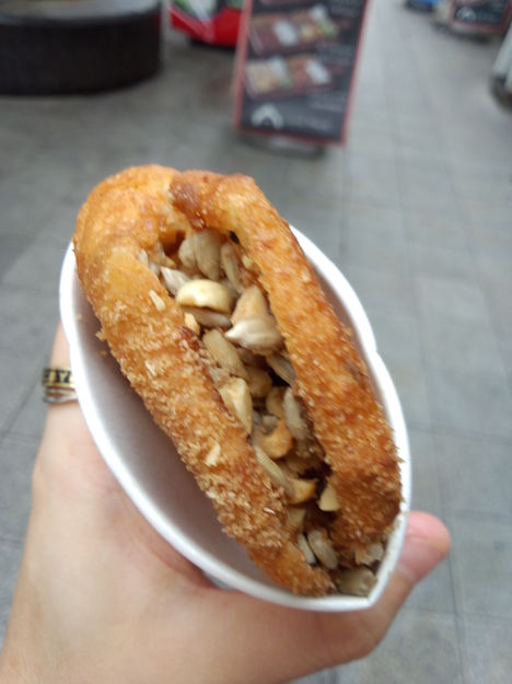 ホットクとは、もち米や小麦粉を練ったもので、中に砂糖とシナモンを入れて、たっぷりの油で焼いて作った丸くて熱いお餅のこと。屋台フードの代表であるホットクですが、最近ではナッツやレーズンなどがたっぷり入ったホットクや、生地にトウモロコシ粉を使ったものなど、新しいホットクも登場しています。