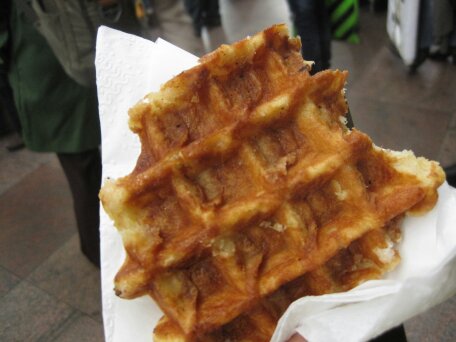ベルギーワッフルには2種類あり、大きめの長方形がブリュッセル風ワッフルといい、ふわふわサクサクと軽い生地です。そしてもう1つが丸くてもっちりした生地が特徴のリエージュ風ワッフル。シンプルなプレーンタイプから、チョコレートがたっぷりかかったものやホイップクリームがかかったものなど、様々な種類が楽しめます。