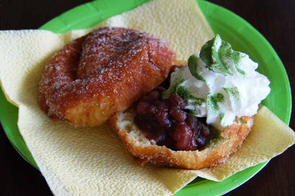 マラサダは表面はカリッと、中がフワフワに揚がったドーナツに砂糖をまぶしたもので、もとはポルトガルのお菓子です。ポルトガルからの移民がハワイに伝えたとされる家庭菓子で、注文を受けてから揚げる、焼き立てのマラサダはフワフワで絶品です。