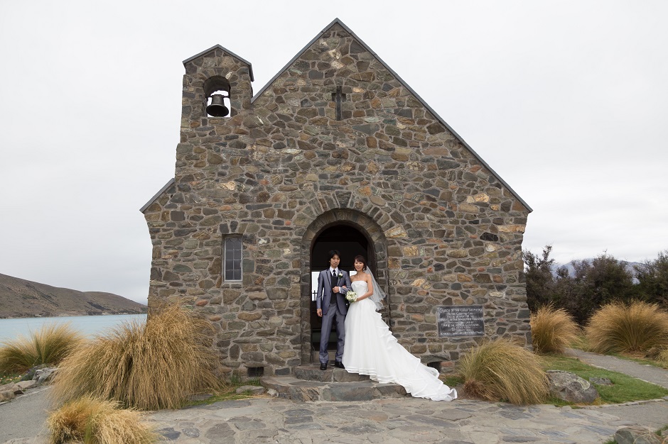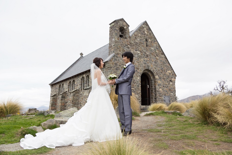 新郎「アットホームな感じがして緊張せずに挙式が出来たので良いと思いました。 英語が話せなくても日本人のコーディネーターさんが居たので全く心配はありませんでした。誓いの後に教会全体に鐘が鳴り響いた時や窓から見えるテカポ湖の壮大さに感動しました。
