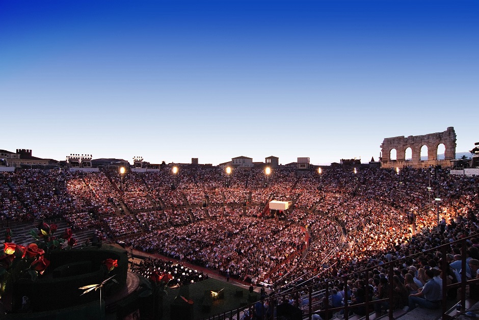 「ロメオとジュリエット」の舞台としても知られる、北イタリアの町ヴェローナ。この町にある古代ローマ時代の遺跡は、建造から推定2,000年を経た今もなお、現役の劇場として夏の間にオペラが上演されます。