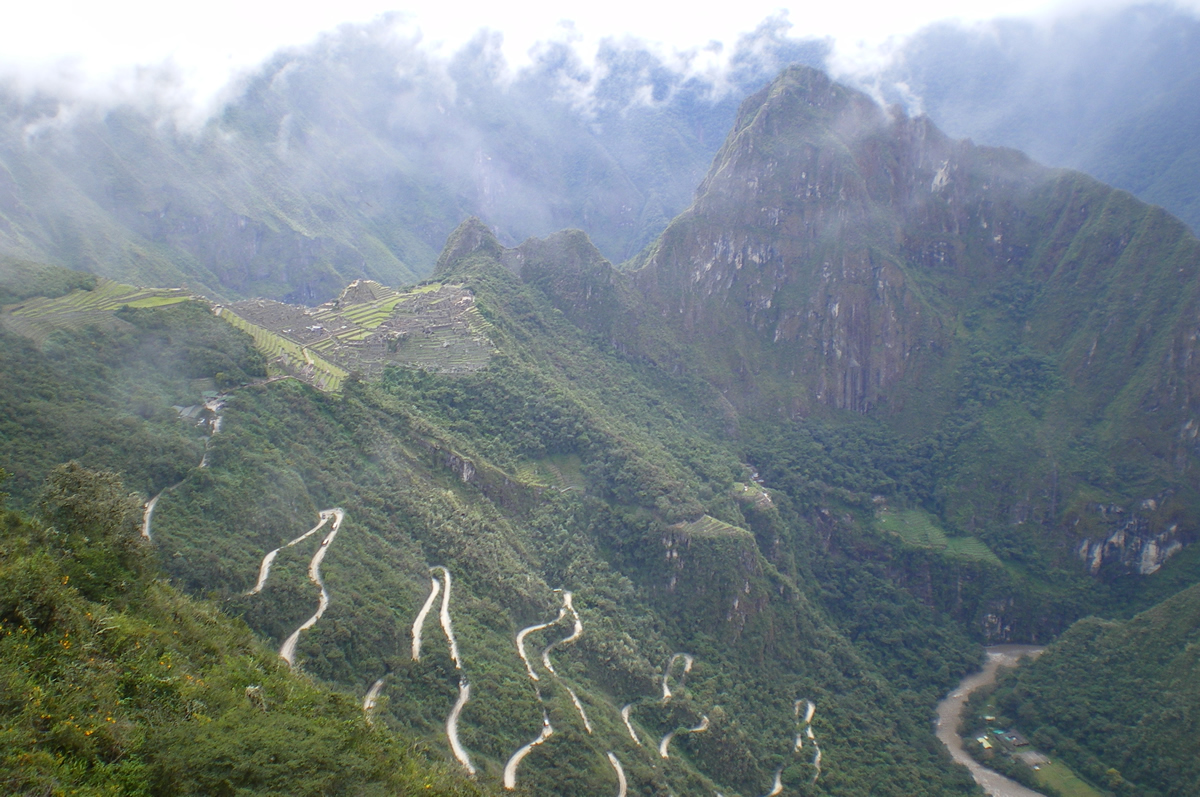 今でこそシャトルバスで遺跡に上りますが、この遺跡を神秘的な存在にしてきたのは、谷底からは誰もその存在を解らなかったからです。つづら折りの山道はマチュピチュ遺跡との出会いを演出してくれます。