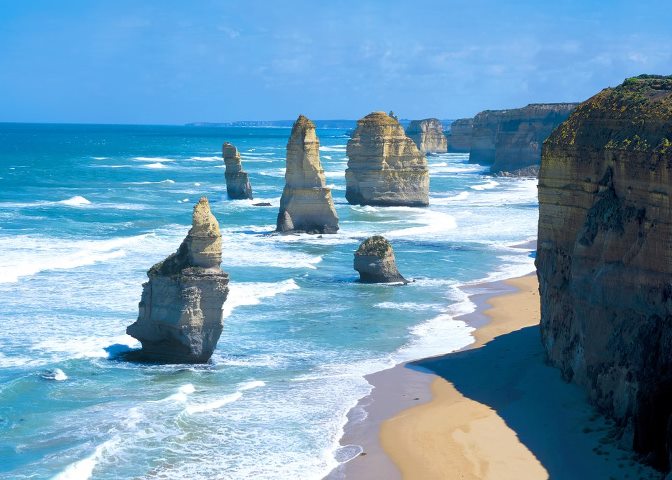 複雑に入り組んだ断崖絶壁、美しい入江、何万年もの太古から浸食により出来上がった奇岩群が点在しており、大自然が創り出す絶景が広がります。中でも「十二使徒」は有名です。