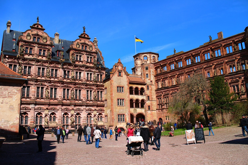 ドイツで最も美しい古都のひとつ、ハイデルベルク。巨大なワイン樽があることで有名なハイデルベルク城は、プファルツの国を治める選帝侯の居城でした。ハイデルベルクはライン川とネッカー川の合流する街で、高台にあるハイデルベルク城からはハイデルベルクの美しい街並みを眺めることができます。