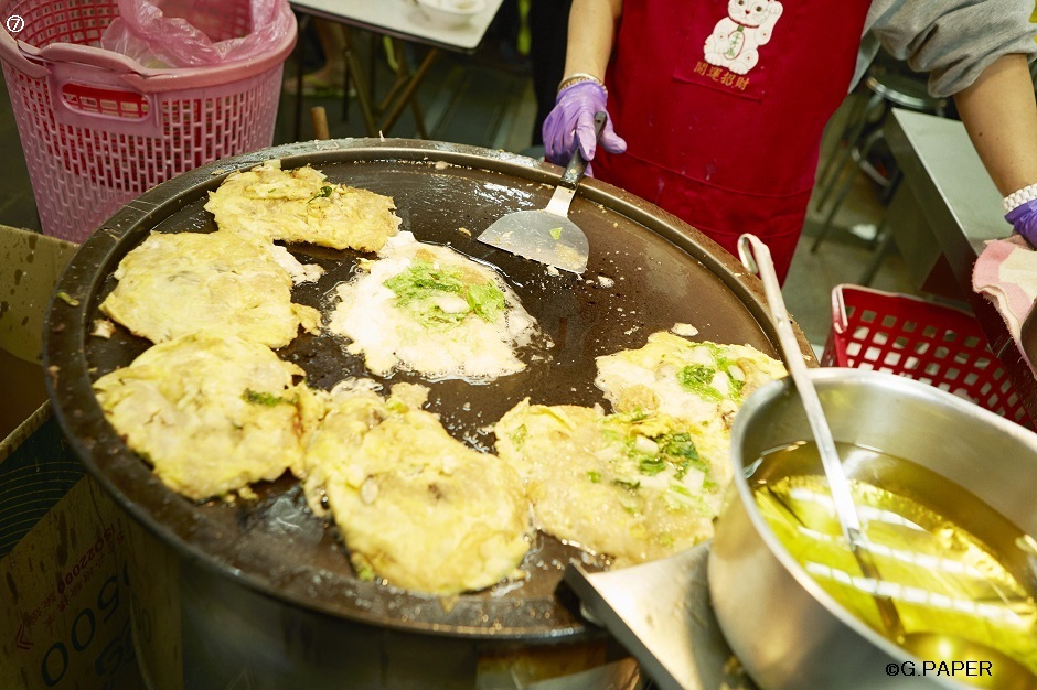 ⑦⑧台湾の人気屋台料理「 蚵仔煎(オアチェン)」(牡蠣のオムレツ)。おばちゃんの慣れたヘラさばきに見とれ、その場でしばし観覧してしまったほど。