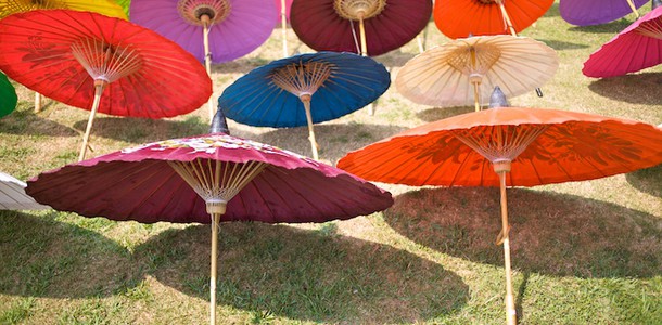 毎年1月に開催される傘祭りでは、“サー”と呼ばれる木から作るカラフルな唐傘が空や寺院に飾られます。展示だけでなく美女が傘をさしながらパレードをするミスコンやたくさんの露店もあるお祭りです。