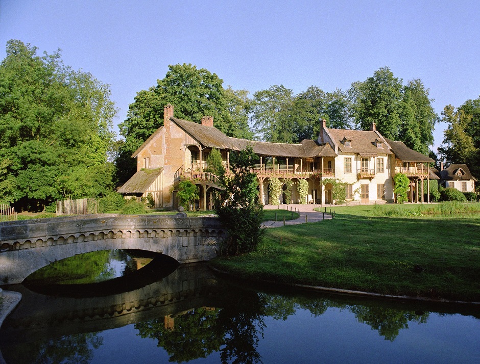 マリー・アントワネットが最も愛したという、離宮プティ・トリアノンは、豪華で贅沢な宮殿から離れ質素な生活を楽しんだ場所です。建物の屋根は主に茅葺き屋根でできています。ヴェルサイユの喧噪から逃れた王妃は、ごく親しい人たちとともに、この隠れ家を憩いの場として利用しました。田園生活に憧れた王妃の茅葺き屋根でできた田舎家、