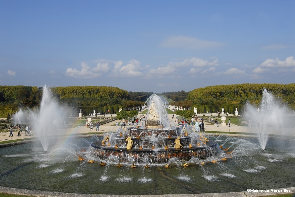 広大な噴水庭園は、ルイ14世の命令でパリのチュイルリー庭園も手がけた稀代の造園家アンドレ・ル・ノートルによって設計されました。宮殿建設よりも労力がかけられ、完成までになんと約40年かかりました。宮殿と同様に庭園も重要であると考えていた国王自身も、この庭園の全ての計画に関わりました。