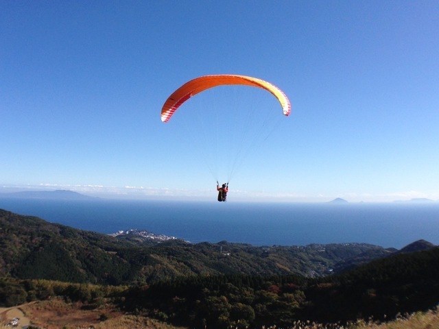 下田公園から車で30分ほどの河津エリアでは、パラグライダー体験ができます。「今井浜フライングスクール」では、タンデム(二人乗り)フライトで、インストラクターと一緒なので安心です。大自然の中で鳥のように浮遊する感覚を体験!民家なども近くにないので、眼下に広がる景色を見ながら、日常生活を忘れてゆったりとリフレッシュ!