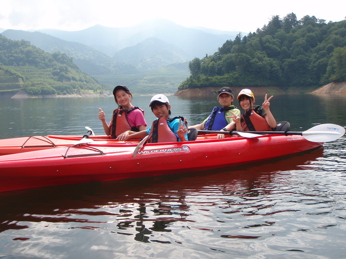 たんばらラベンダーパークから約45分、奥利根四湖のひとつで雄大な自然に囲まれている神秘的な湖「ならまた湖」ではカヌーに乗ってのんびりと湖上散策ができます。お子様からご年配の方まで参加しやすいゆっくりとしたペースで、陸上からは見に行くことのできないカヌーならではのナイスビューポイントを巡ります!