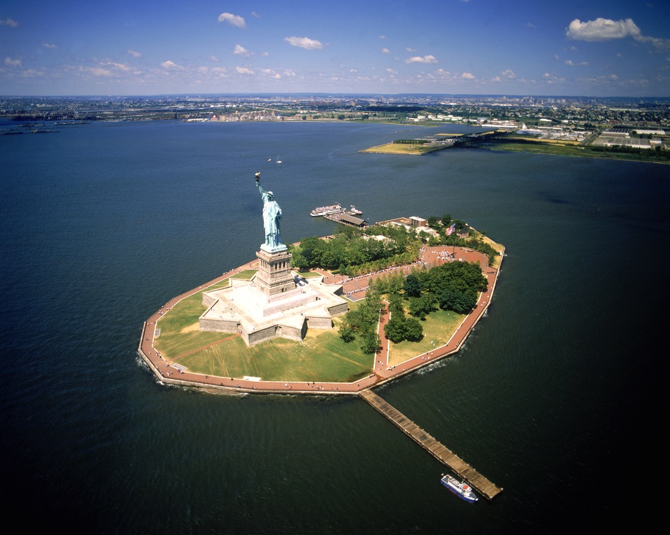 フェリーに乗って、自由の女神が建つリバティ島も訪れてみてください。間近で見る女神の迫力に圧倒されます!フェリーの上での、自由の女神と記念撮影はマスト!リバティ島側から見るマンハッタンの風景にも感動します。