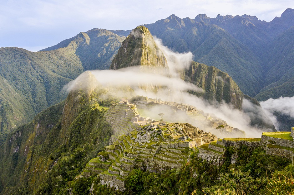 マチュピチュは標高約2450mの尾根に位置する古代インカ帝国の遺跡です。山裾から遺跡の存在が確認できないことから、「空中都市」「インカの失われた都市」などと称されます。世界遺産だけでなく、2007年7月には新・世界七不思議のひとつにも選ばれました。 遺跡は神殿と居住区で構成され、その総面積の約半分の斜面には段々畑が広がっています。