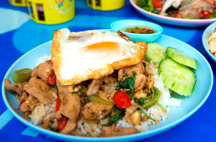 「パップン」は空芯菜、「ファイデーン」は赤い炎を意味します。赤い炎の強火でササッと短時間で炒めるのがコツです。空芯菜はシャキシャキした歯ごたえがあり、ニンニクが効いた味付けがやみ付きに。 オススメ店「イムチャン」は写真付きの日本語メニューがあり、タイ語がしゃべれなくても安心!屋台の雰囲気を気軽に楽しめます。