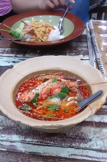 日本でもおなじみのタイ料理「トムヤムクン」。「トム」は煮る、「ヤム」は混ぜる、「クン」は海老を指し、海老が主役の辛味と、レモングラスの酸味が入り混じったスープです。 オススメのお店は「ピーオー」という、トムヤムヌードル(トムヤムスープに麺が入った料理)のお店です。ローカルな町並みを歩く為、少し分かりづらい場所にありますが、この絶品トムヤムクンは、食べに行く価値アリ。