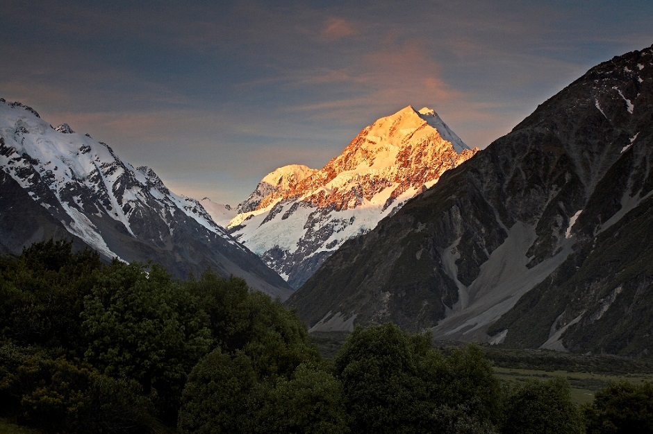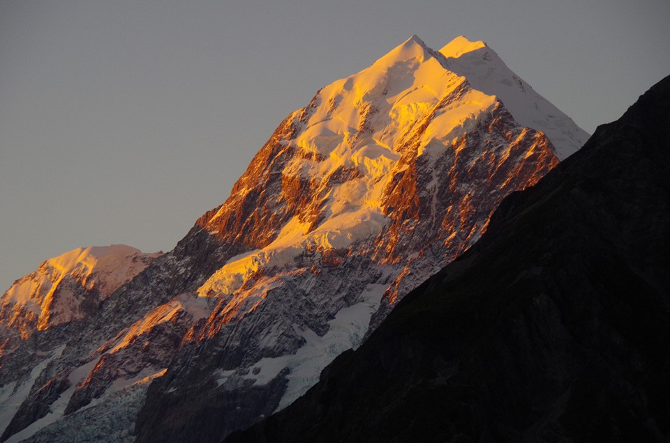 「4月に、ツアーでいきました。マウントクックのモルゲンロートは、最高でした。」