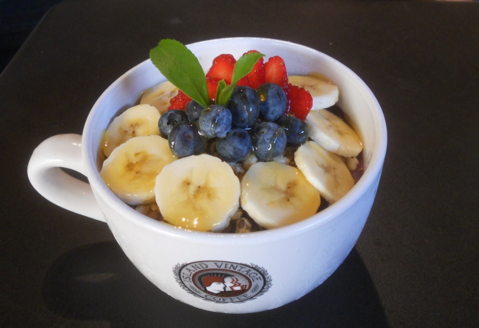 ワイキキの中心地、ロイヤル・ハワイアン・センター2階にあるコナコーヒー専門店。 オススメメニューは「アサイーボウル」。冷たいアサイベリーのスムージーとグラノーラが絶妙です。新鮮なフルーツもたっぷり入っているのでヘルシー♪テイクアウトもできるので、ビーチで食べる事も可能です。