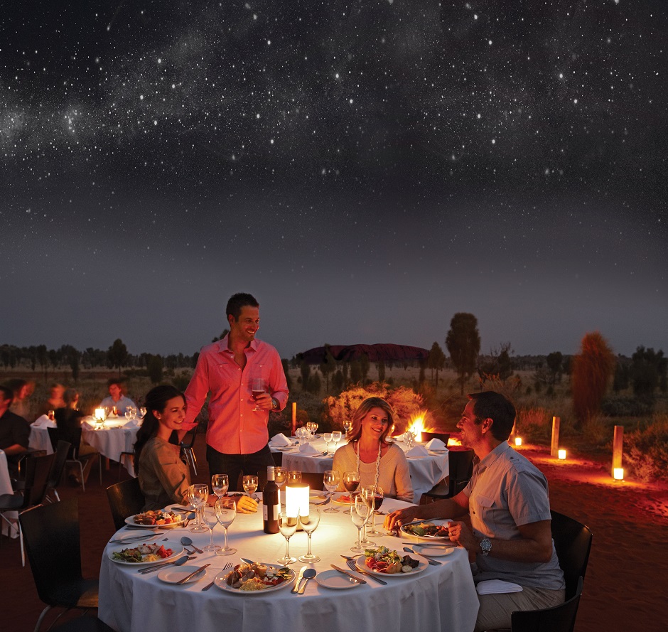 夜は満天の星空の中、ロマンティックなディナーを!「サウンド・オブ・サイレンス」は、エアーズロックのサンセットを眺めた後、大自然の静寂の中でのディナーをお楽しみいただけます。ディナー終了後はライトが消され、お待ちかねのスタートーク。スタッフが軽快なトークで星座の説明をしてくれます。