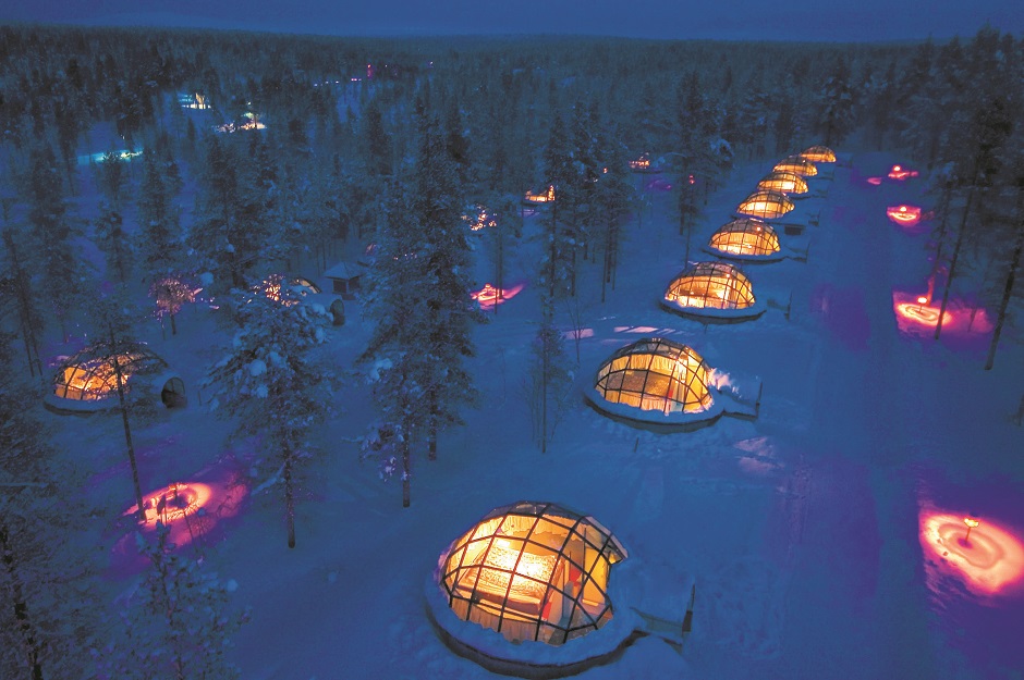 特別なガラスでできたガラス・イグルーが特徴的なホテル。暖かいベッドに寝転んでオーロラが見られるという贅沢を叶えられる点で人気でした。