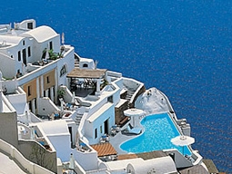 13歳以下のお子様は宿泊不可、夏の間のみ営業する大人のリゾートホテルです。 エーゲ海の青い海から300フィート上、イアの崖の上に建ち、屋上にレストランがあります。インフィニティプールからカルデラの一望をお楽しみ頂けます。 海の青とホテルの白のコントラストが美しく、どこをとってもまるで絵葉書のような景色が広がります。