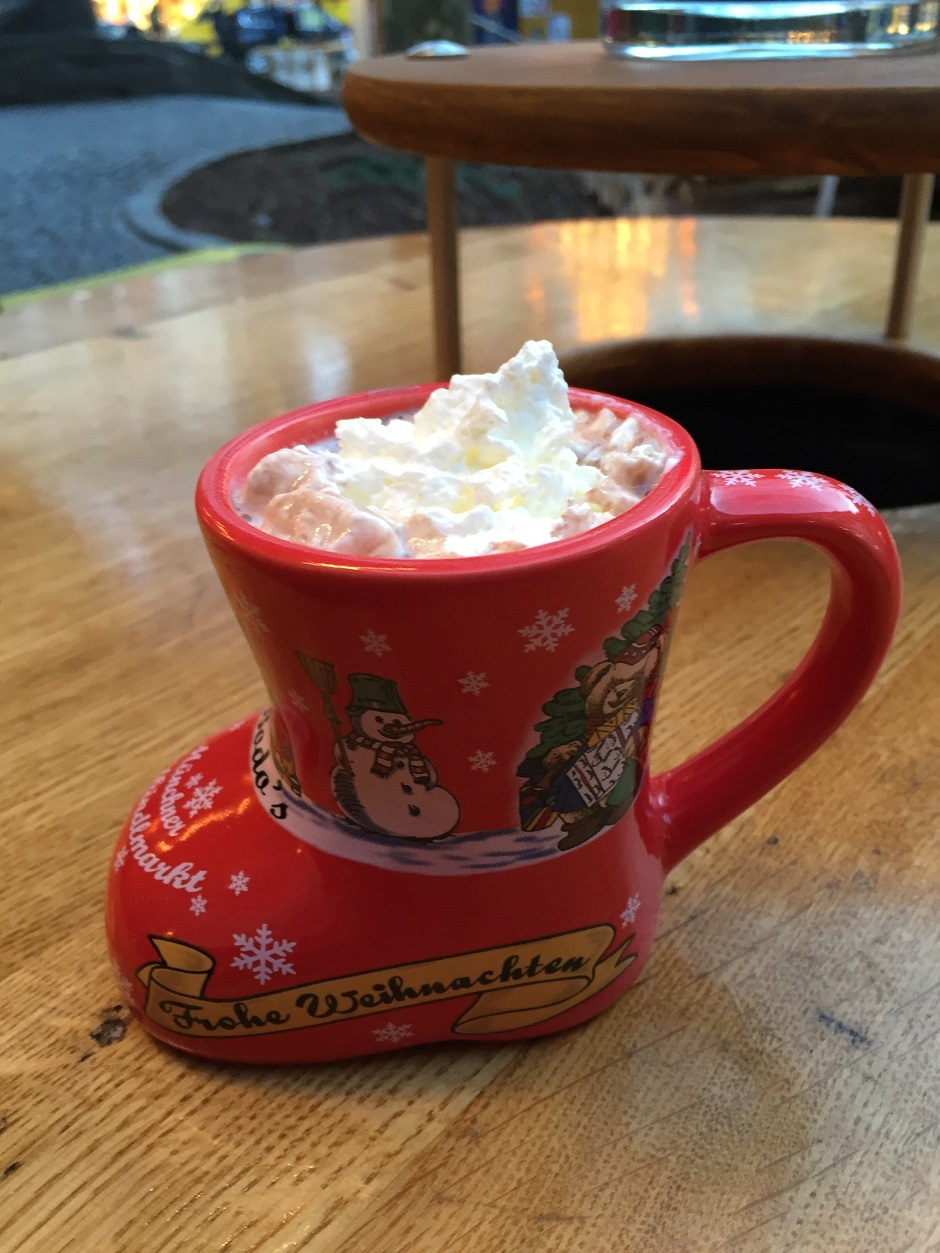 寒ーい冬に暖かいオリジナルのカップに注がれるグリューワインを飲みながらおしゃべりするのがドイツ流。
