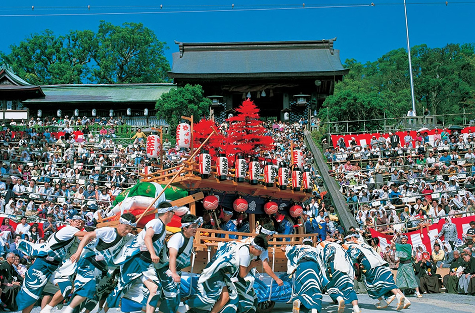 ポルトガルやオランダ、中国など異国文化が取り入れられ、「龍踊り(じゃおどり)」や「コッコデショ(=子供4人の太鼓打ちをのせた神輿に似た太鼓山を、担ぎ手たちが高々と放り投げ片手でキャッチする。)」など、ダイナミックな演し物を楽しむことができます。