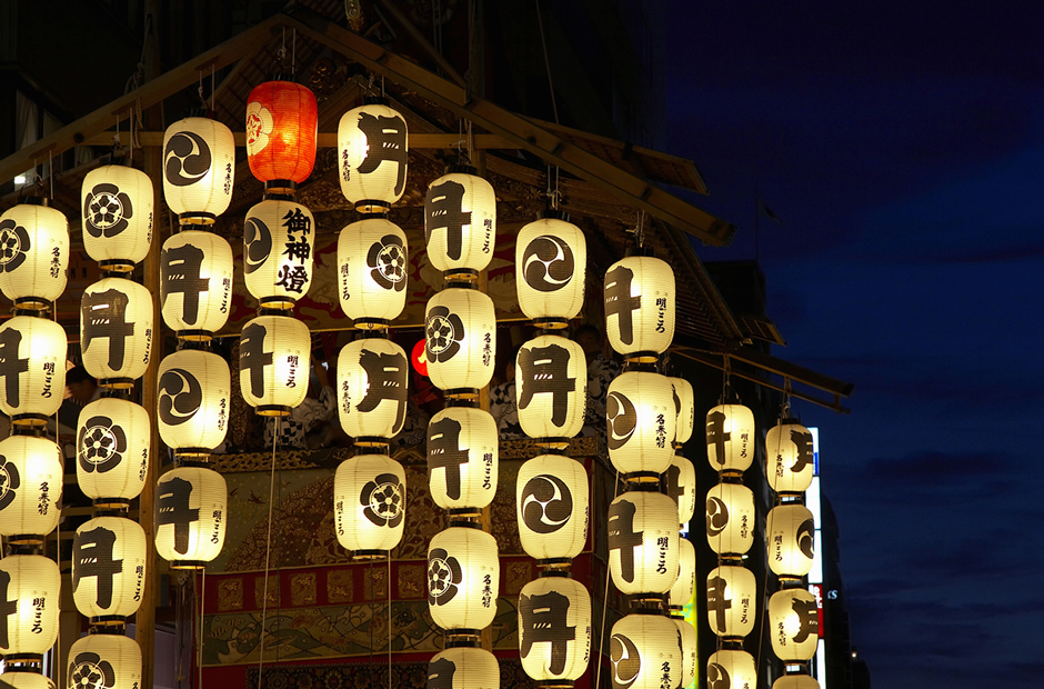 およそ1100年前、祇園の神を祀り、災厄の除去を祈った事が始まりと伝えられており、33基の山鉾巡行(やまぼこじゅんこう)が祭りの見所です。