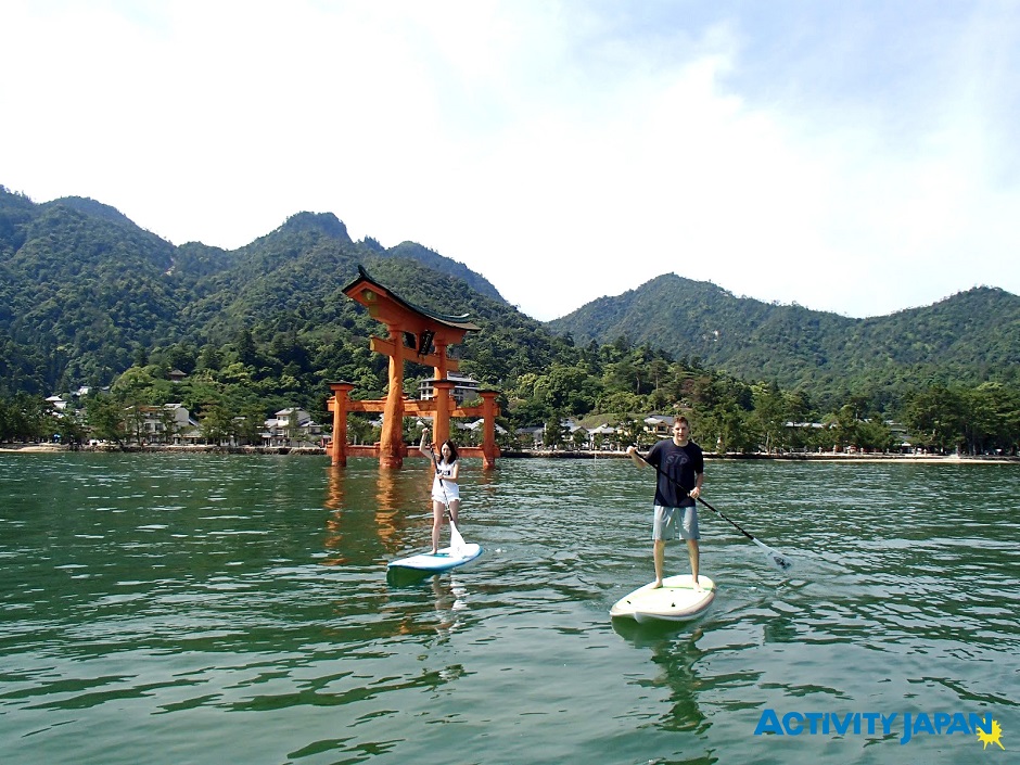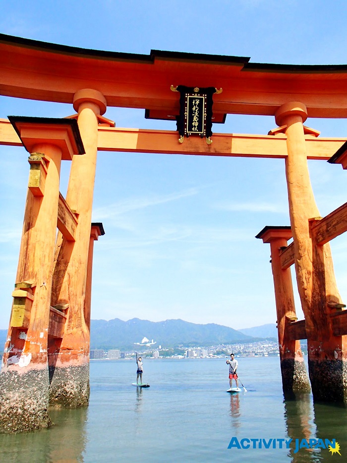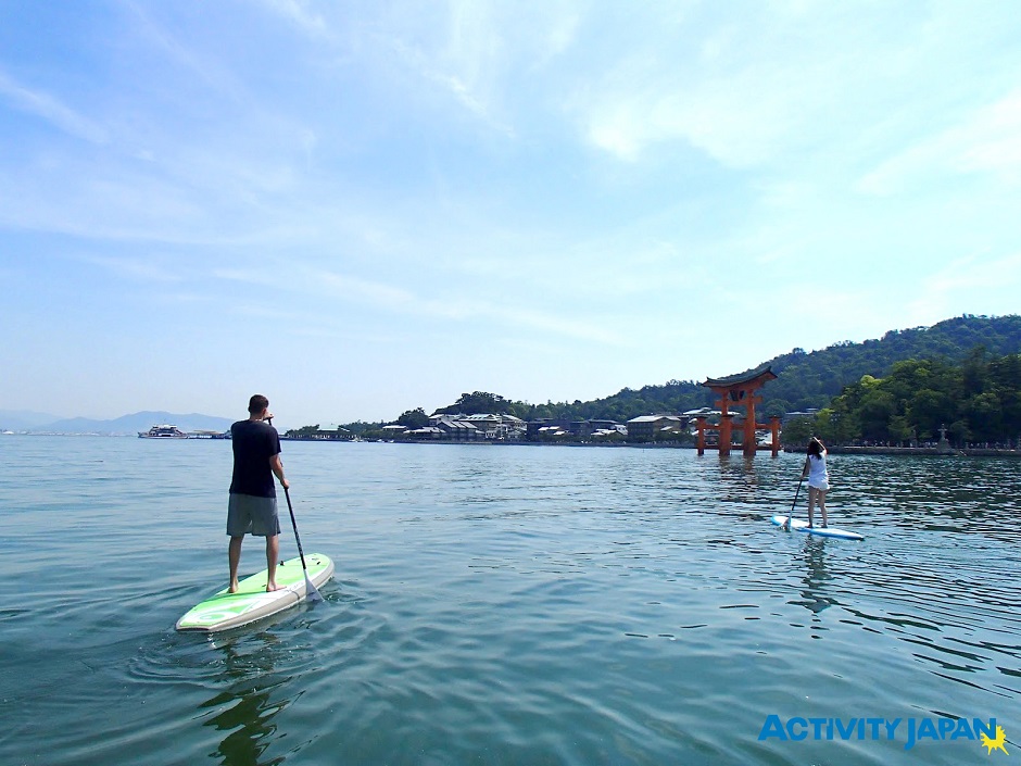 大人気のSUP(スタンドアップパドルボード)で、宮島を目指し嚴島神社の大鳥居をくぐり抜ける体験は特別です。