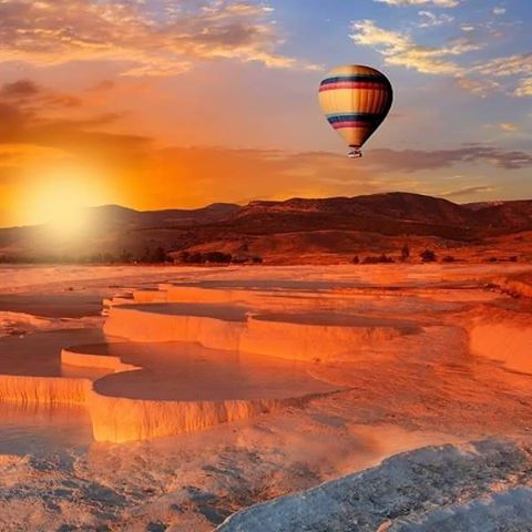 トルコ西部デニズリ県に広がる石灰華段丘。ヒエラポリス遺跡とともに複合世界遺産に登録されている。パムッカレとは「綿の宮殿」というトルコ語。綿花の一大産地であったことに由来している。地下熱で温められ湧き出た温水中から炭酸カルシウムが沈殿し、純白のような景観を作りだしている。そのパムッカレの一番上にあるのが、ヒエラポリス遺跡。ローマ帝国の温泉保養地として栄えたが、1354年の大地震で完全に廃墟と化した。