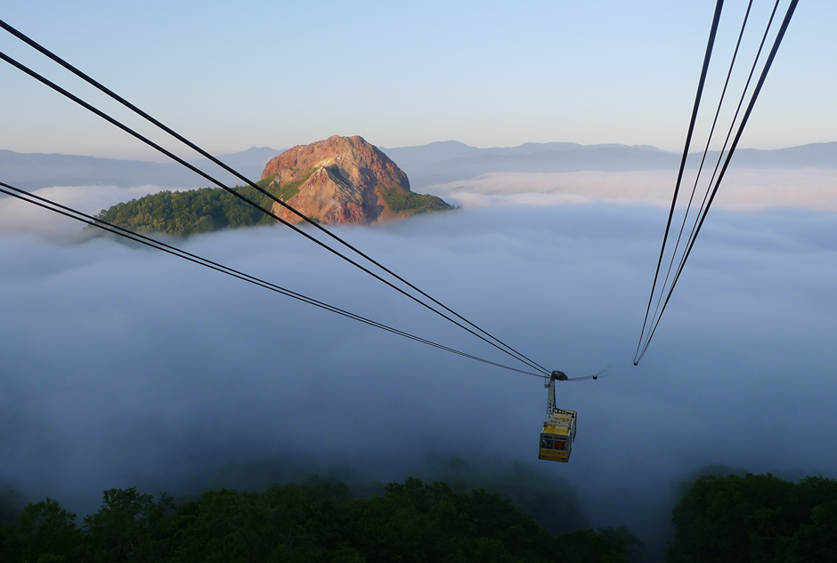 ここでは洞爺湖で発生した霧、噴火湾から流れ込んできた海霧が雲海となって見られます。雲海から顔を出す昭和新山や洞爺湖の中島が見られる事があります。